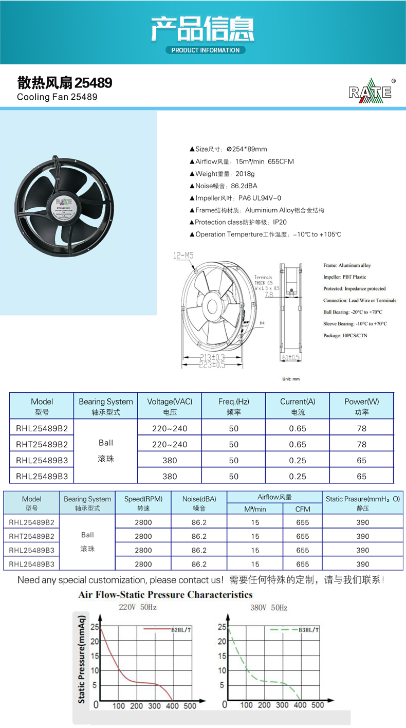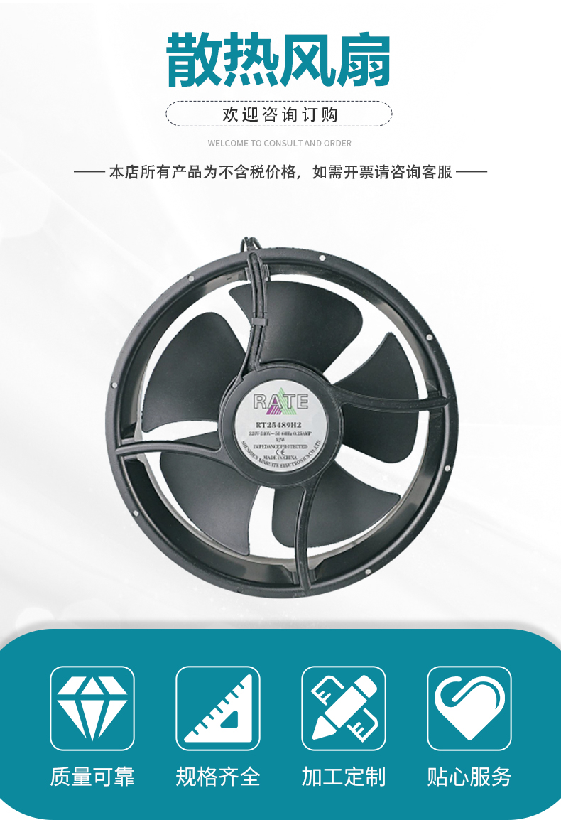 220V 金属压铸排气风扇无刷交流风扇 技术规格:- 电压:220VAC, 频率:50/60,功率:35 瓦, 轴承样式:套筒,风量:150 CFM, 速度:2500 RPM,噪音:45 分贝……