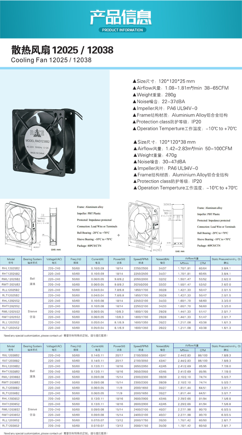 尺寸:254*89mm 重量:2018G 噪音:86.2分贝 风叶:PA6 UL94V-0 防护等级:IP20